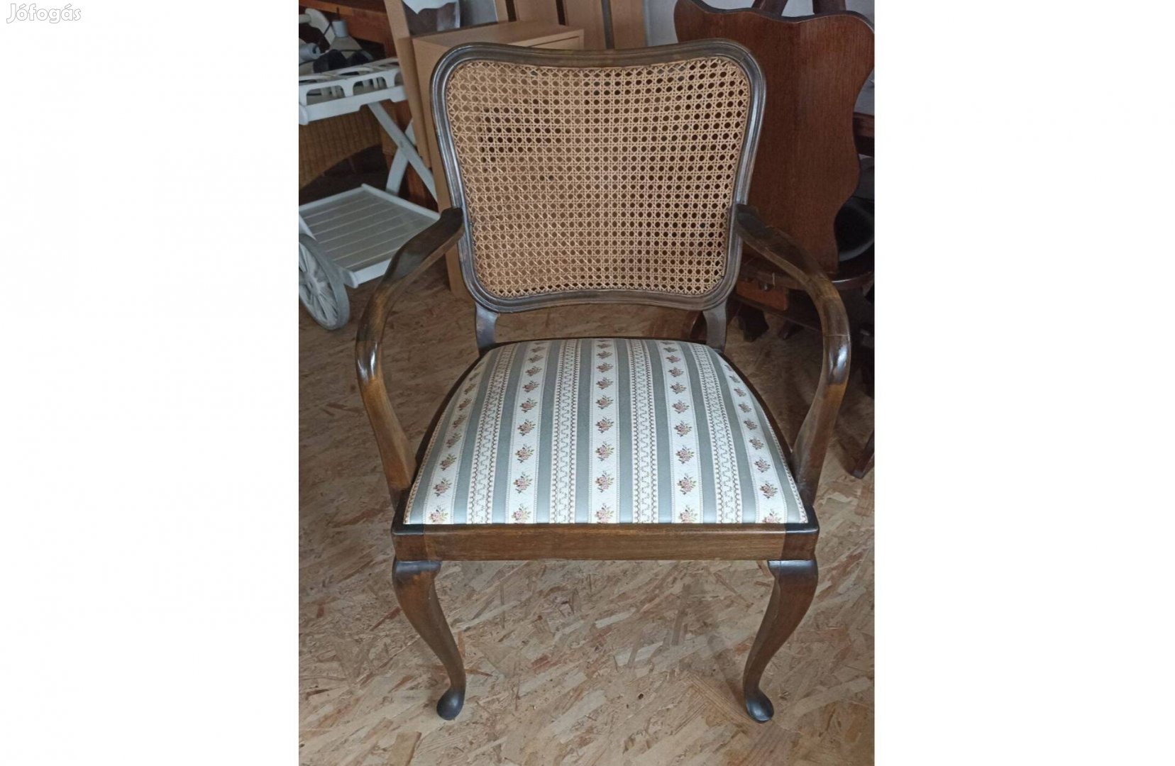Eladó a képen látható, tömör fa barokk stílusú nádfonatos karosszék. A bútor használt, de kitűnő állapotú.