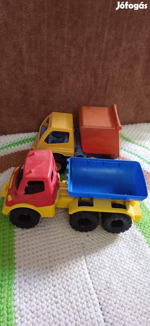 A kukásautó kapott az élettől, a homokzóban élt, fakó, repedezett, ahogy az anyag elfáradt, de még egyben van, igazából ez nem árképző, viszont homokozóban még szolgálhat.
