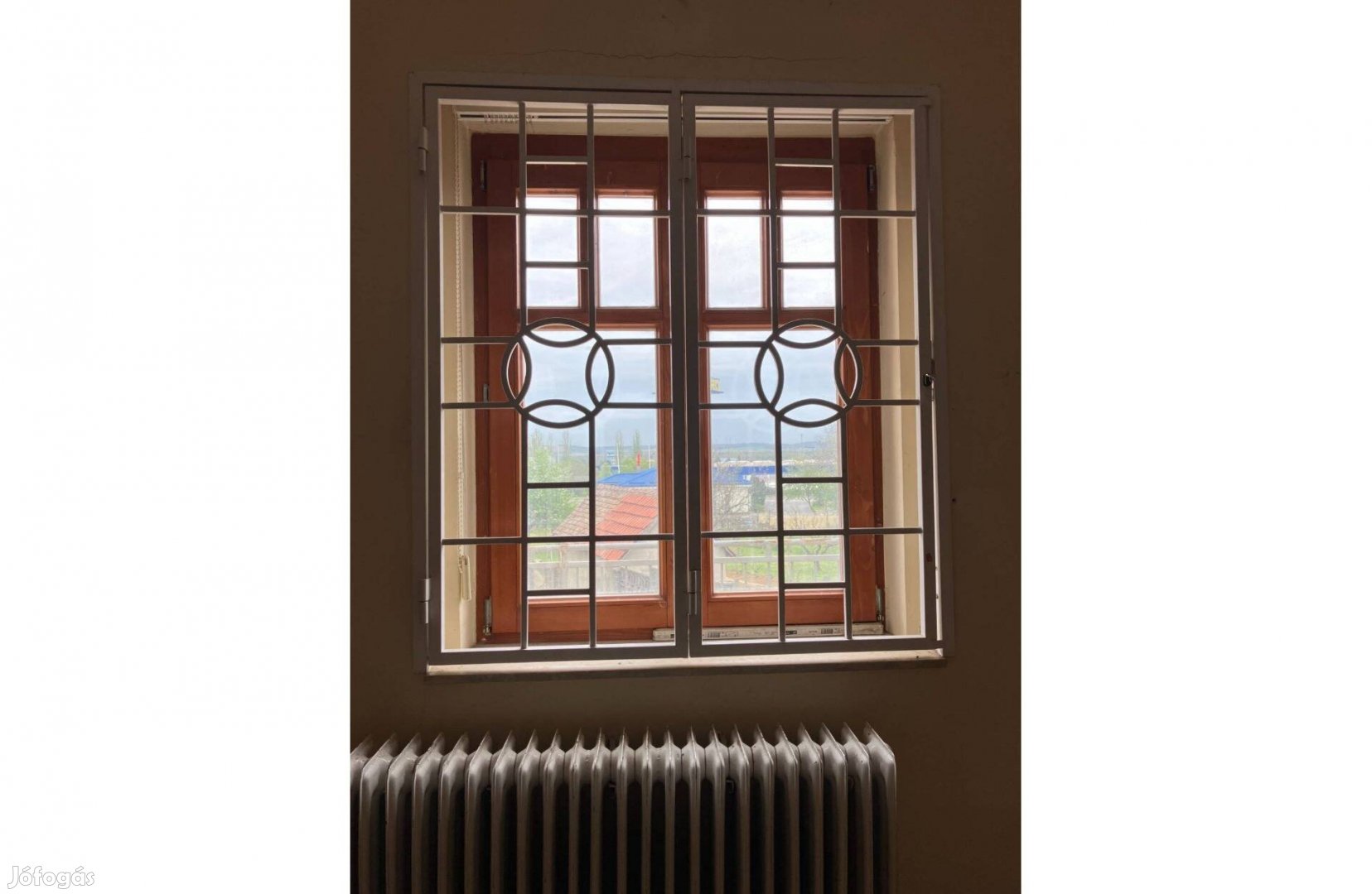 Nyitható és biztonságosan zárható acél idomokból készített esztétikus biztonsági rácsok kettes és hármas ablakokra külön is.