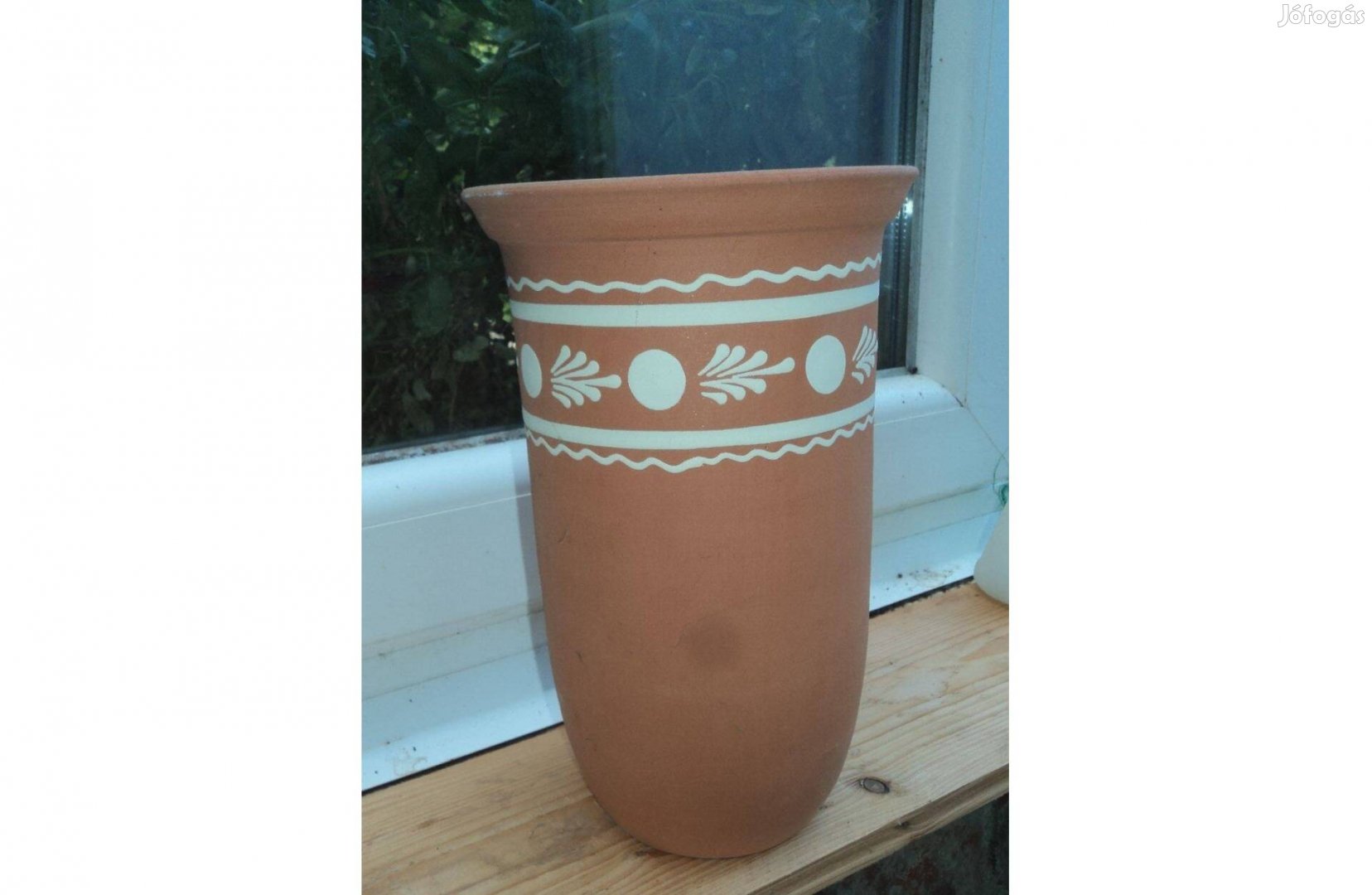 Mintás agyagtartó, vízzel töltve, akár borhűtőként is használható.
