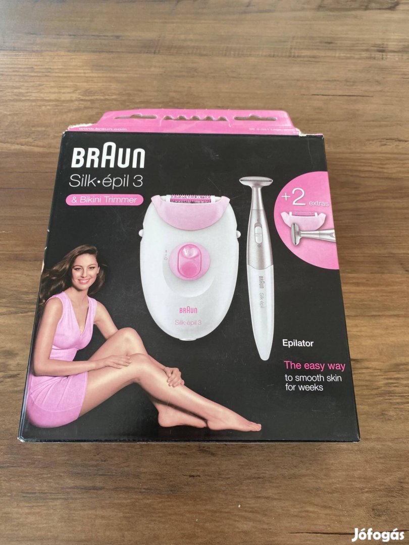 Silk épil 3 SE 3-321 típus. Az epilátor egyszer volt használva, jól működik. Van hozzá bikinivonal-vágó, amihez elem is van, nem volt használva, működik. A leírások és a doboza is megvan.