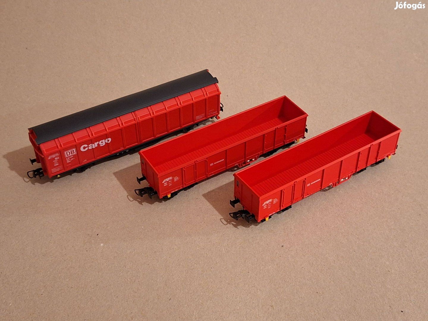 Egyben eladó: DB Cargo Roco eltolható oldalfalú tehervagon és 2db eltérő pályaszámú DB Schenker B-models Eaos-x tehervagonok. A Roco kocsit a gyári dobozában adom, a két B-models kocsinak nincs doboza, őket gondosan becsomagolva tudom küldeni. A kocsik jó állapotúak, mindegyik fém kerékkel és normál kengyeles kapcsolóval rendelkezik. H0 (1:87) méretatányú modellek.