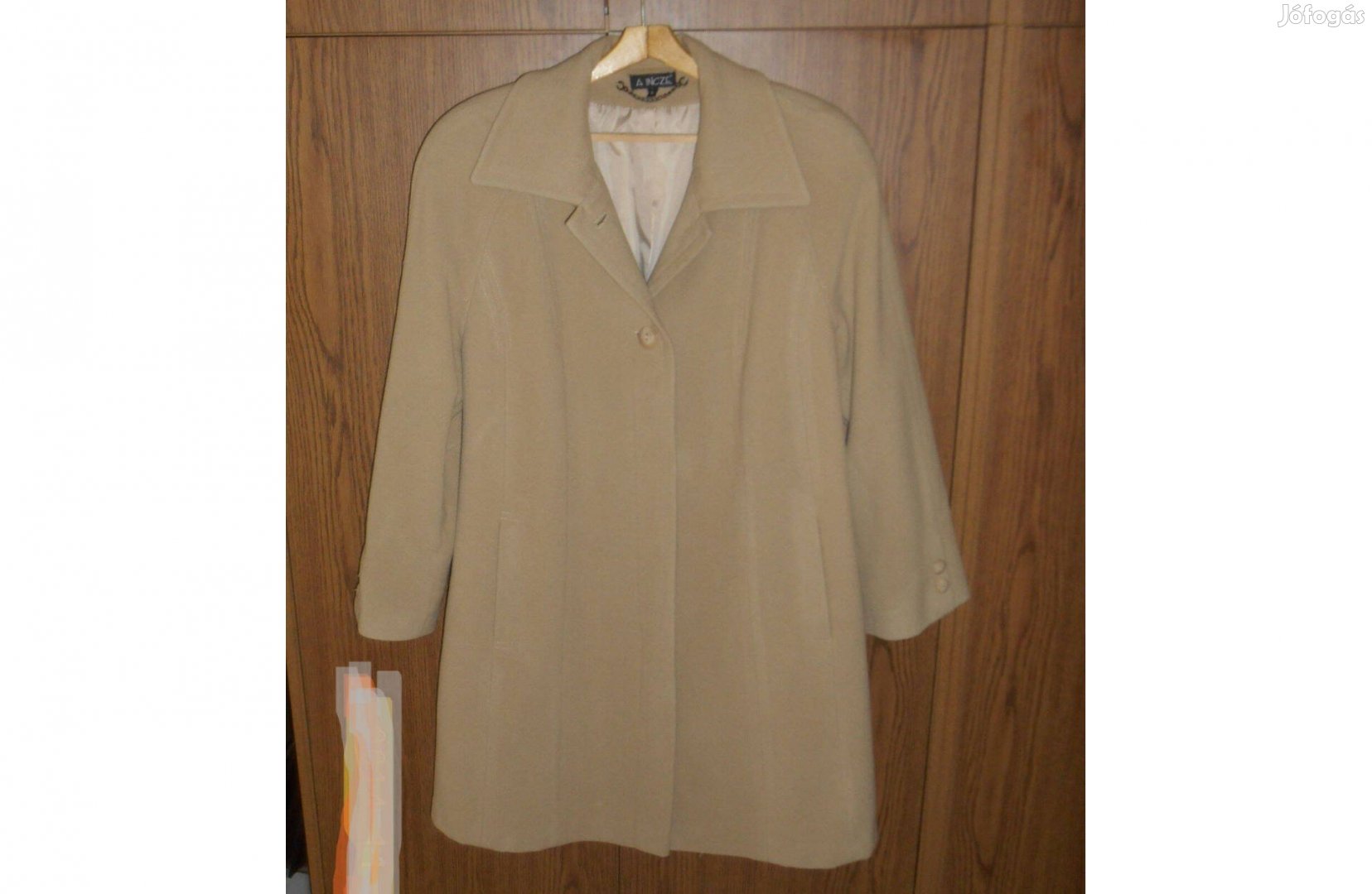 44-es méretű drapp női télikabát, jó állapotú, kifogástalan béléssel