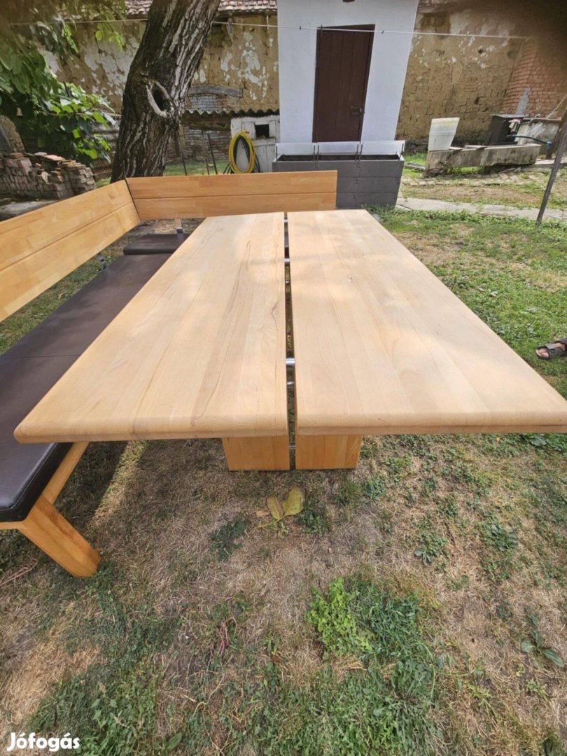 Eladásra kínálom tömörfa ebédlősztalt és hozzátartozó sarokpadot valamint ingyen adok 3 hozzá tartozó magas támlás műbőr széket.