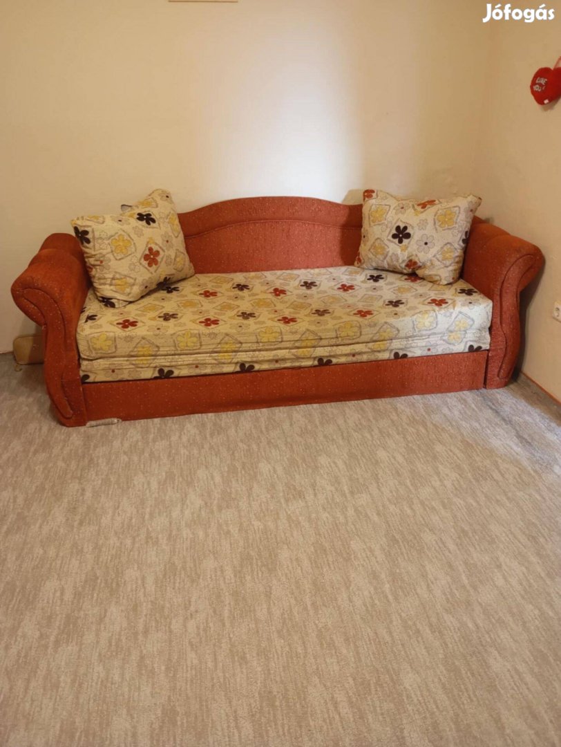 Eladó használt, 2 személyes kihúzhatós, ágyneműtartós, szivacsos, kanapé , az egyik karfája sérült de nem látható. -- Méretek: - Az ágy összecsukva: 224x80cm, - az ágy összecsukva fekvőfelülete: 181x75cm, - az ágy kihúzva: 224x154cm, - az ágy kihúzva fekvőfelület: 181x149cm, - az ágy ágynemű tartója: 176x58, - az ágy magassága fejtámláig: 75cm. Sajnos semmilyen póstai Szállítás Nem megoldható. Cím: Pécs, Arany János utca 20. Tel: