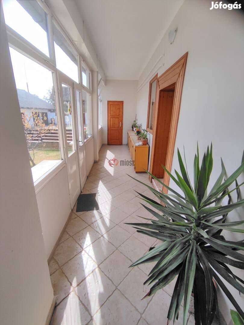 A kapualjból, mely gépkocsi tárolásra alkalmas két különálló lakrész nyílik. A kisebb 63 m2-es lakrészben két szoba, konyha, fürdő WC-vel, kamra, a nagyobb, légkondicionált, 131 m2-es részben folyosó, három szoba, konyha, fürdő, étkező, WC került kialakításra. A burkolatok újszerű állapotúak. A szobák hajópadlósak, jó állapotban vannak, cserére nem szorulnak. A fűtés gázkazánnal és vegyes tüzelésű kazánnal is megoldott.