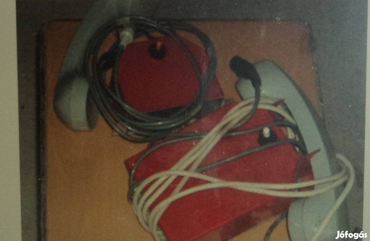 Otthon kialakítandó házi telefonhoz szolgáló szerkezet. Vezetékkel össze kell kapcsolni a két felet. Vagy más célra, alkatrészeknek hasznosítható.