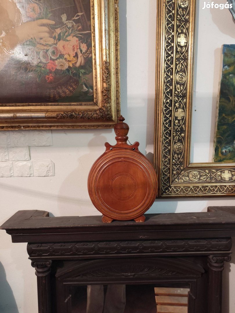 Eladó a képeken látható, fából készült régi kulacs szép állapotban. Magassága 36 cm, szélessége 25 cm.