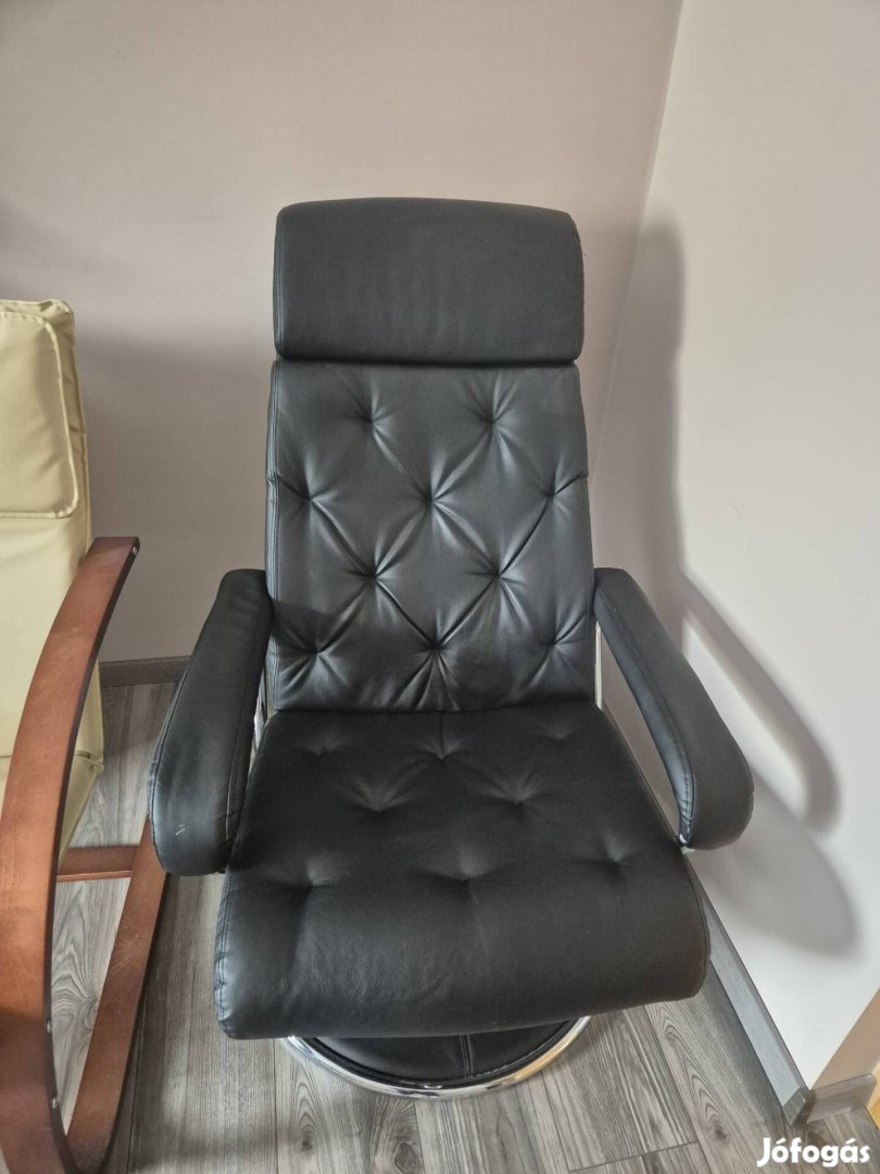 Dönthető háttámlás bőr fotel eladó, karfán kopás látható azért ennyi az ára.