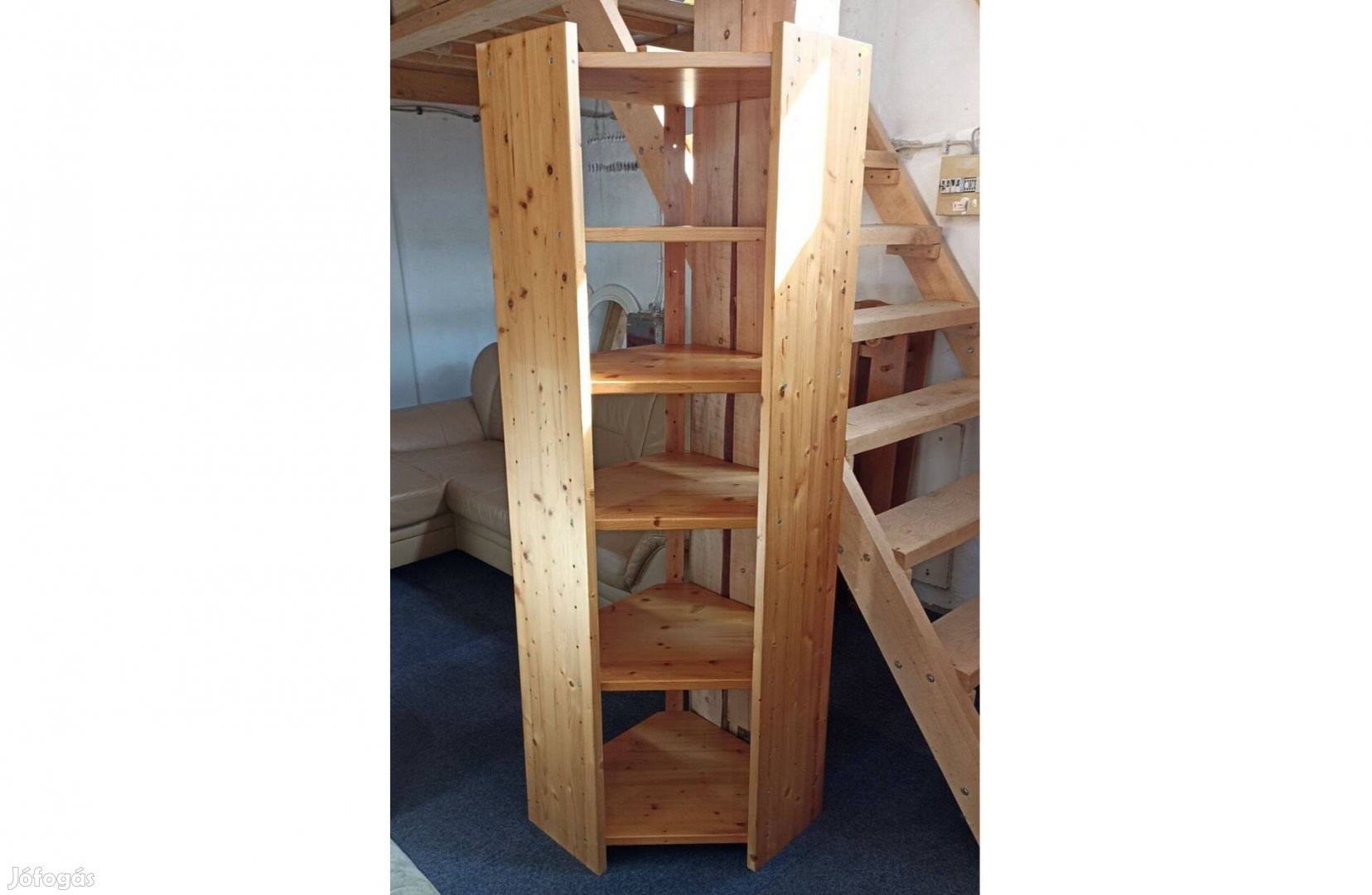Eladó a képen látható tömör fenyő sarokpolc. A polc használt, de kitűnő állapotú.