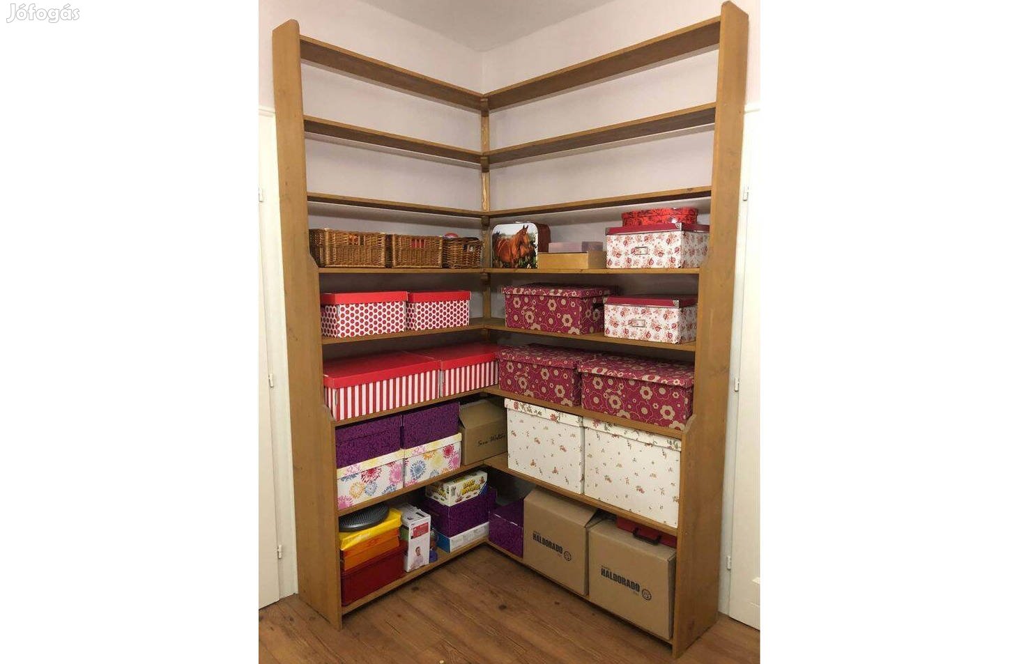 Használt, de jó állapotú fenyő sarokpolc eladó.