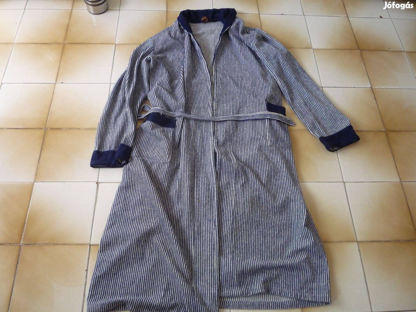 Férfi köntös, fürdőköpeny, kék-fehér csíkos XL