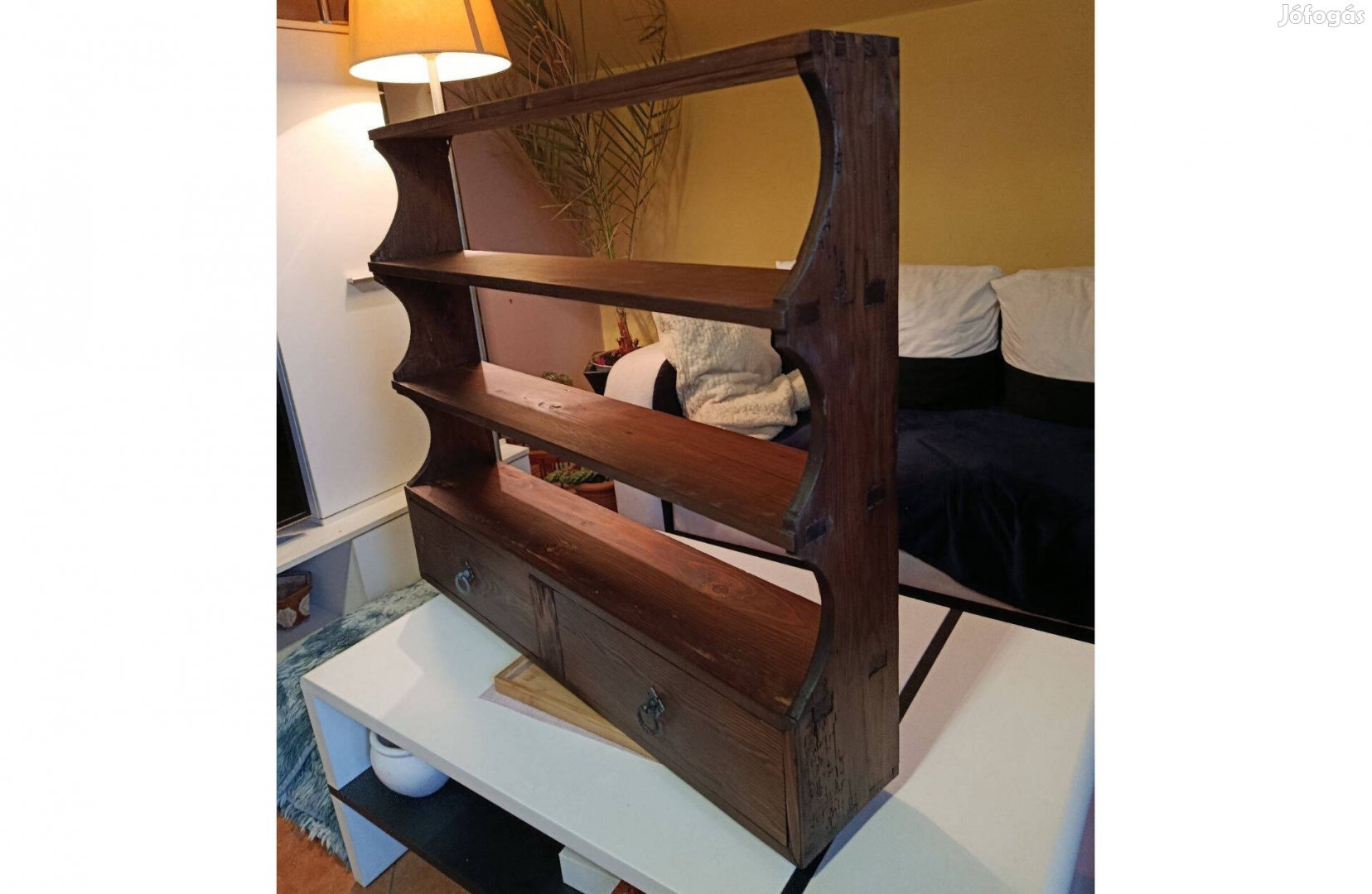 Antik hatásu.Szélessége 84 cm magassága 73cm és a mélysége 16,5cm .A fiok belmérete :hossza 34,5cm magassága 12 és a mélysége 11,5cm.Postázás az aktuális áron.