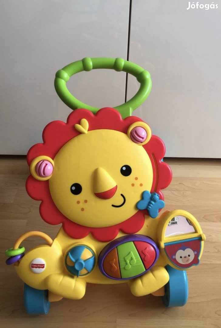 Alig használt, kiváló állapotban. Tökéletes a járást tanuló babáknak. Masszív, oroszlános témájú járókeret két játékmóddal: ülés és játék, állás és járás.