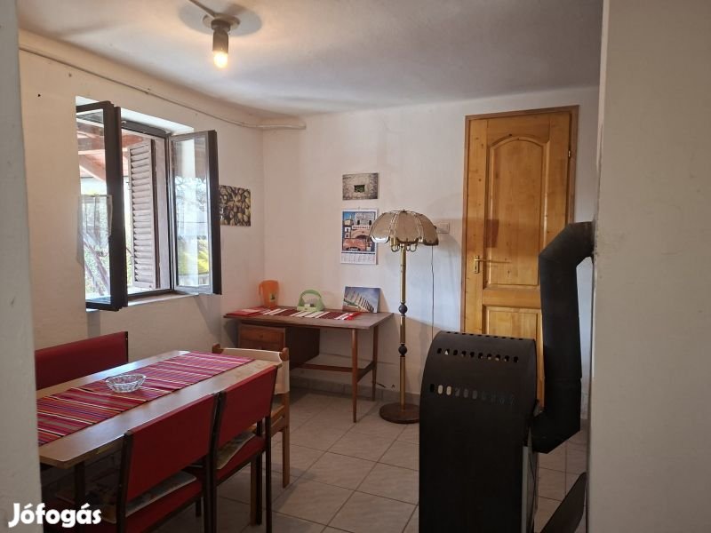 Földszint: Előszoba, hangulatos kályhával felszerelt nappali, étkező főzőfülkével, valamint zuhanyzós fürdőszoba + WC.
