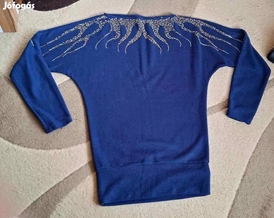 Gyönyörű, vajpuha, strasszos, elegáns, kék pulóver