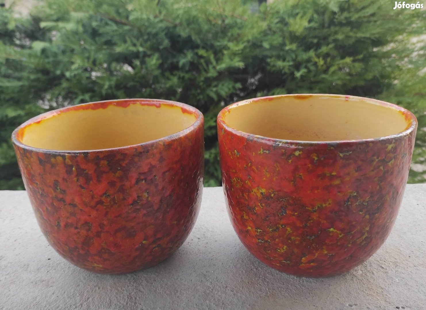 Hódmezővásárhelyi kerámia kaspó. Sérülésmentes, belül kissé vízköves. 13 cm magas. Egy darab van belőle.