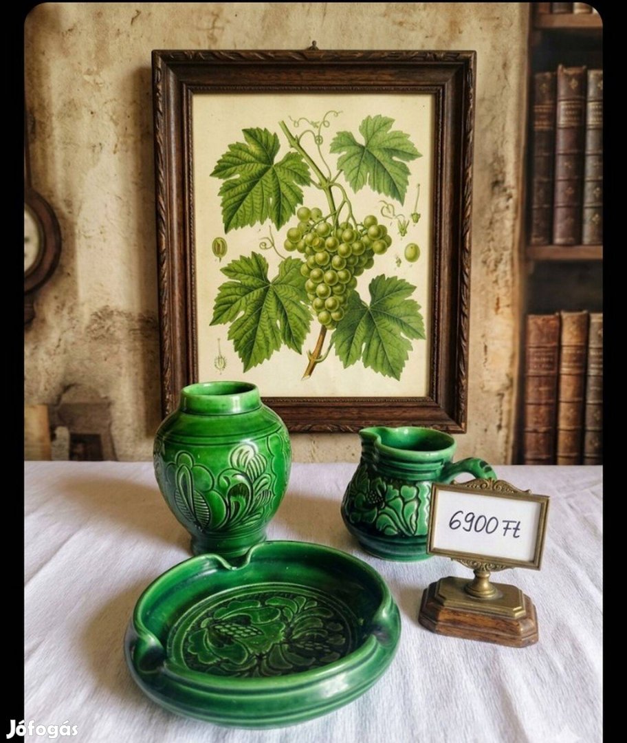 Józsa János korondi zöld kerámia szett ritkább darabok