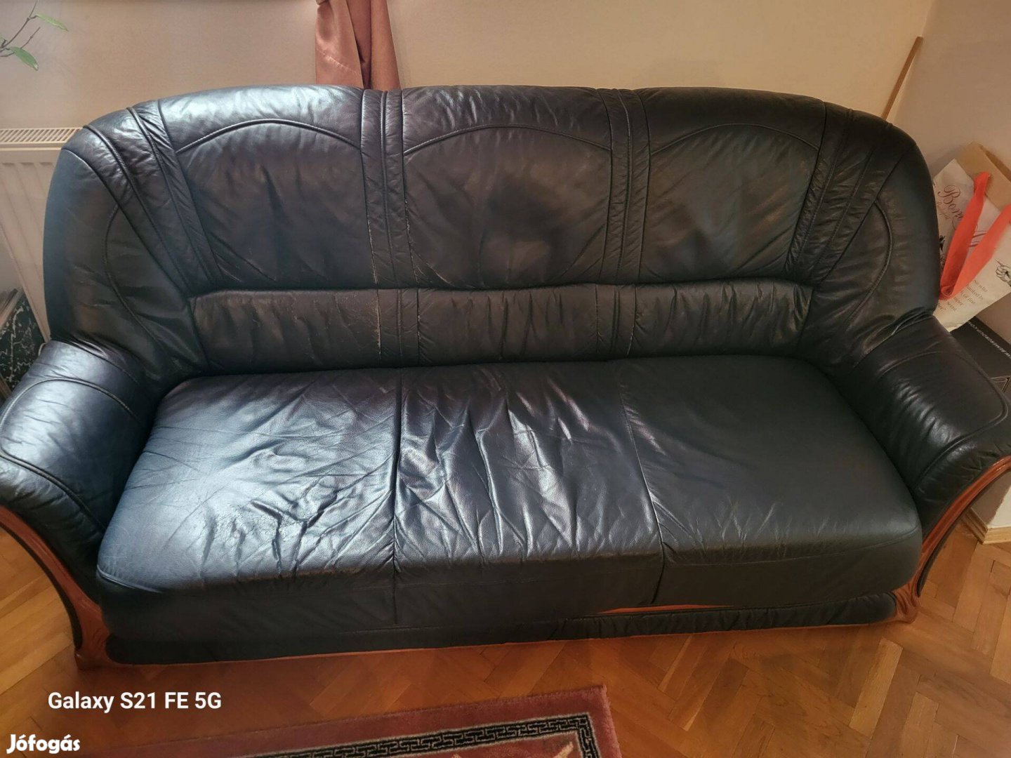 Eladó egy három részes sötétkék bör ülőgarnitúra.