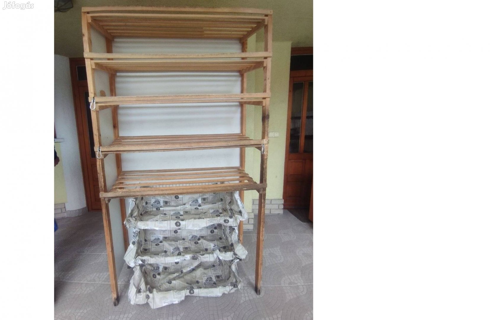 Eladó képen látható kenyeres állvány és a hozzá tartozó kifli és zsemletartó kosarak.
