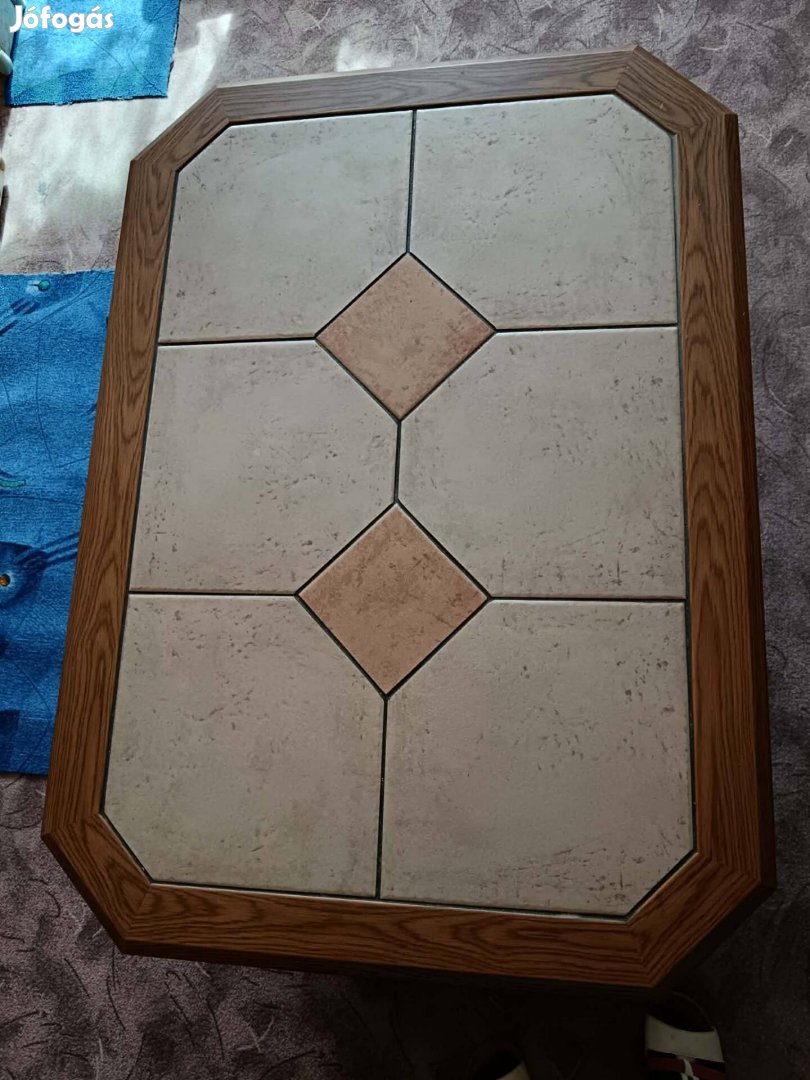 Megkímélt állapotban lévő dohányzó asztal, tömör fa lábakkal, stabil pakoló felület, plusz polc rész