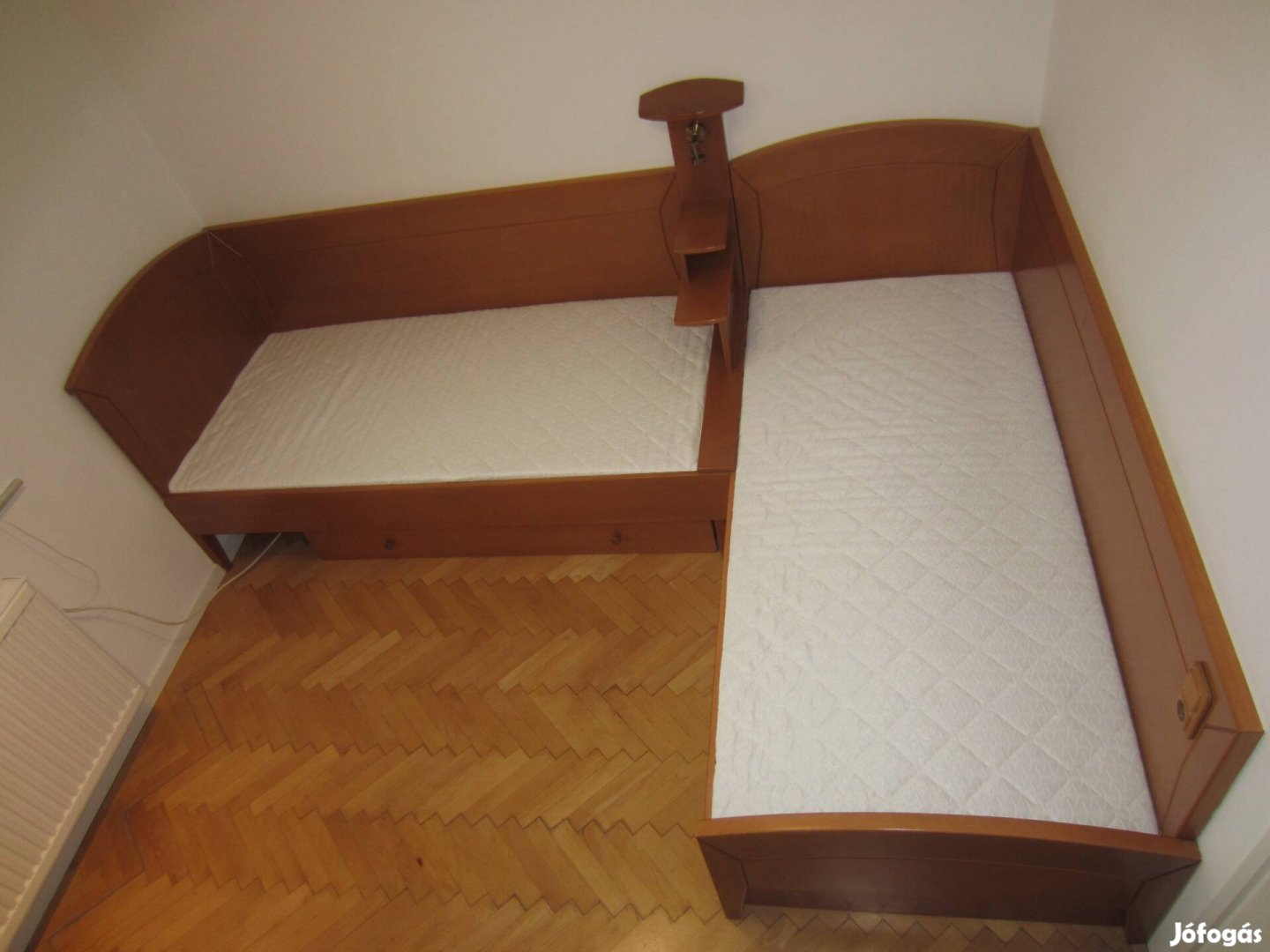 Két db ágy, ágyneműtartóval, falburkolattal, polccal