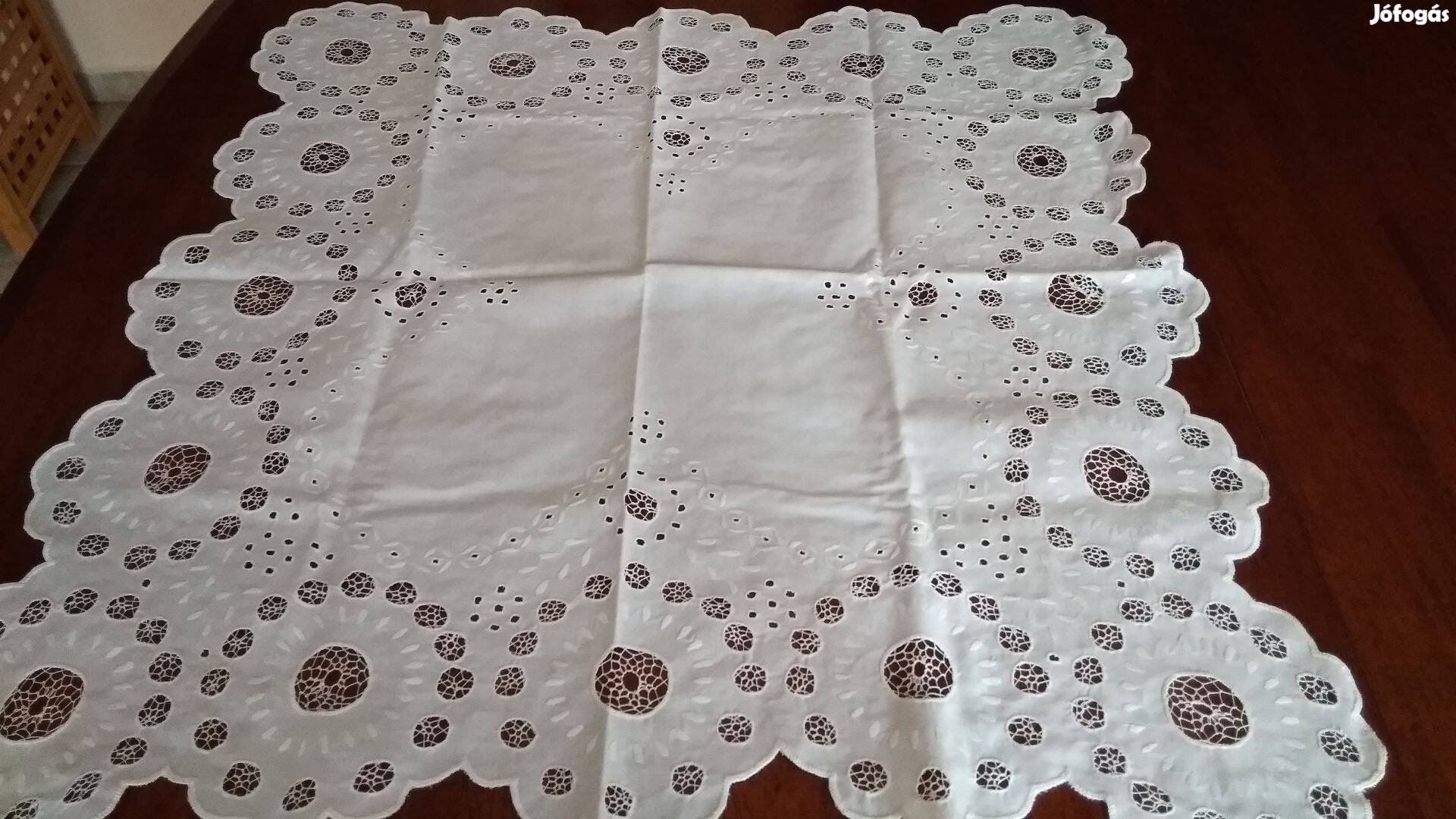 Kézi hímzés, fehéren fehér gyönyörű riselt terítő eladó