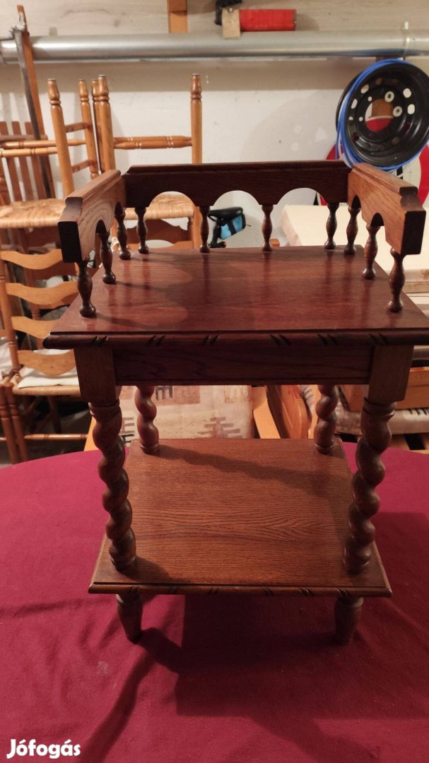 Eladó a képeken látható koloniál telefon tartó, vagy lerakó asztal szép állapotban. Magassága 68 cm, szélessége 42 cm, mélysége 38 cm.