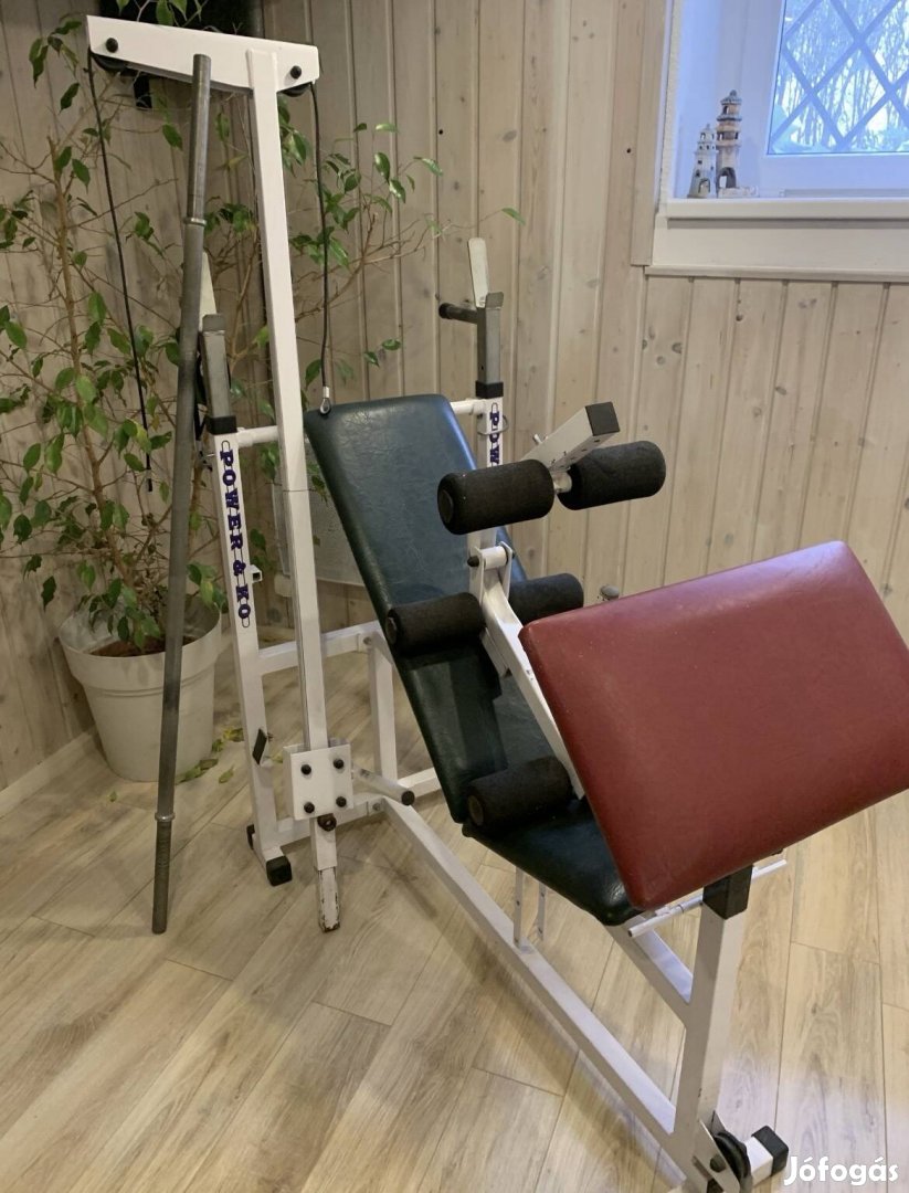 Eladó a képeken látható jó minőségű szép állapotban lévő edzőpad különböző kiegészítőkkel, súlyokkal együtt.