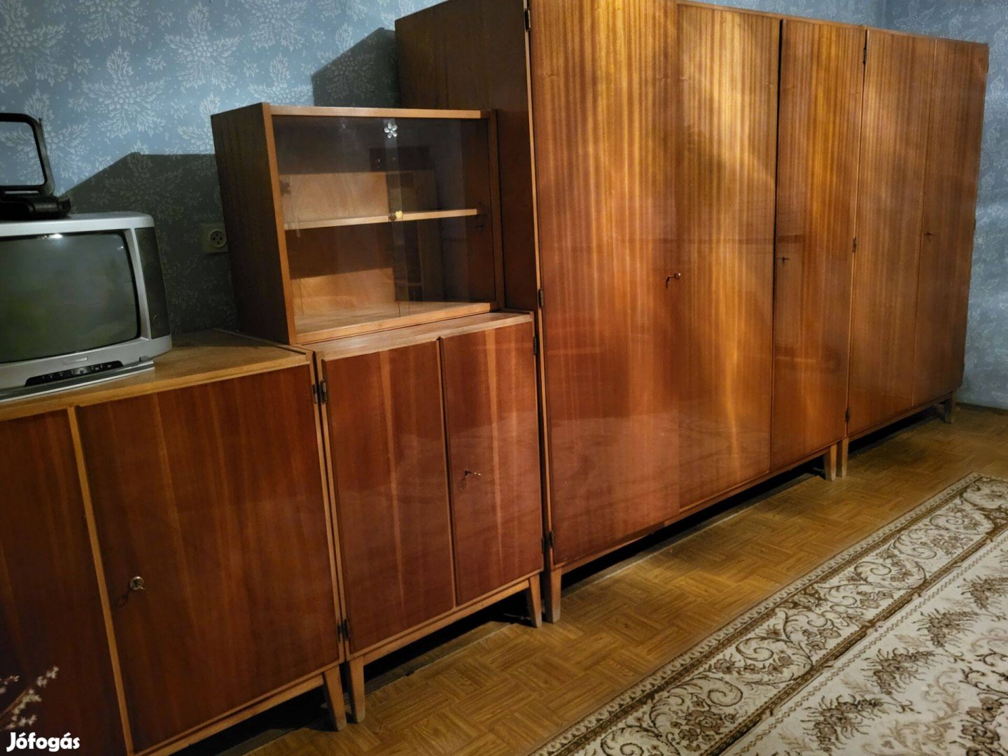 Eladó egy retro lakkozott szekrénysor, korához képest jó állapotban, de az ajtó záródása igazítást igényel . A képen lévő szekrénysor (2db kétajtós, 1db polcos, 1db vitrines és polcos, 1db ágyneműtartós szekrényt tartalmaz) ára: 25.000,-Ft
