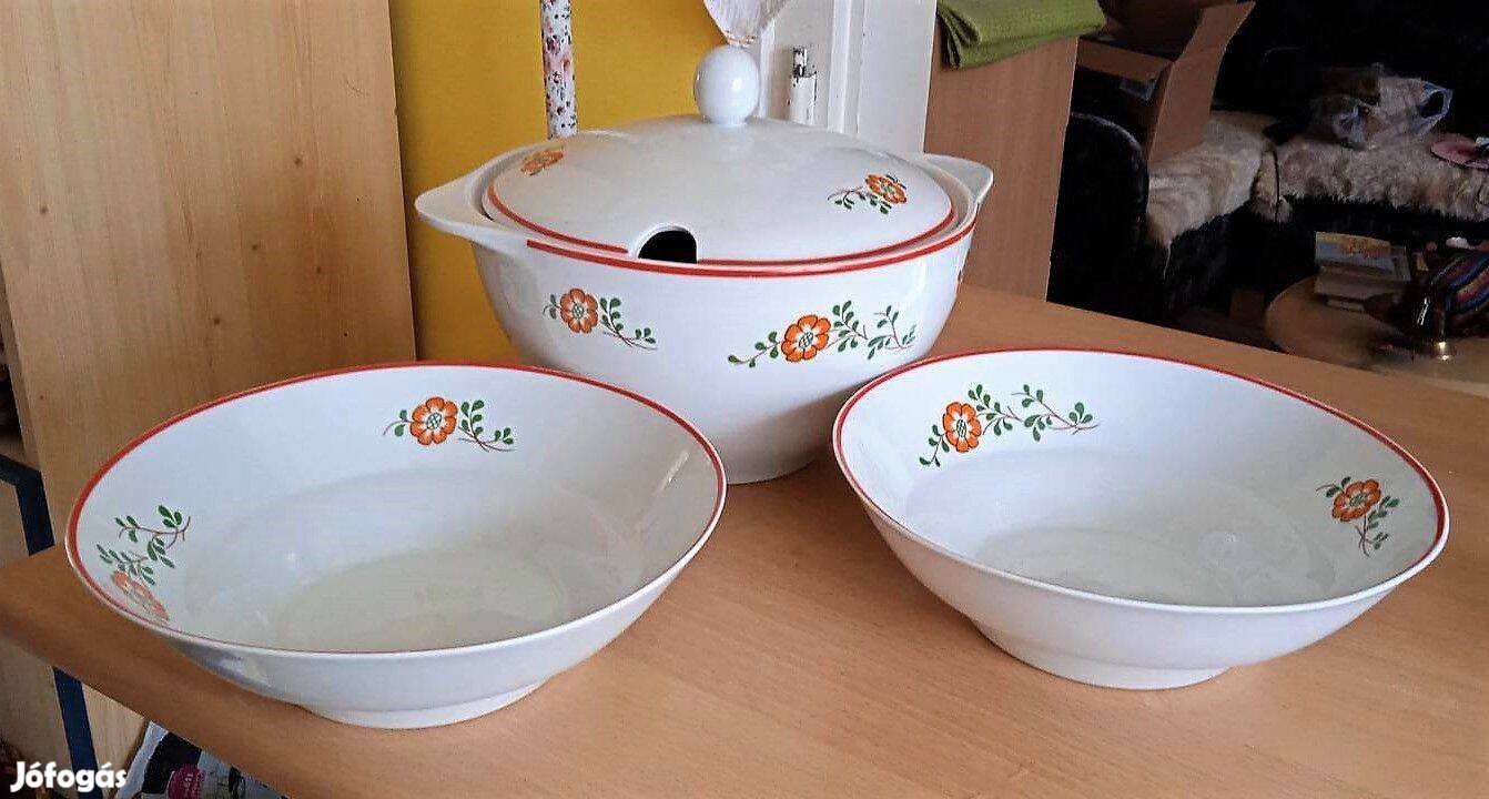 Lengyel Lubiana porcelán levestál két tálaló tállal