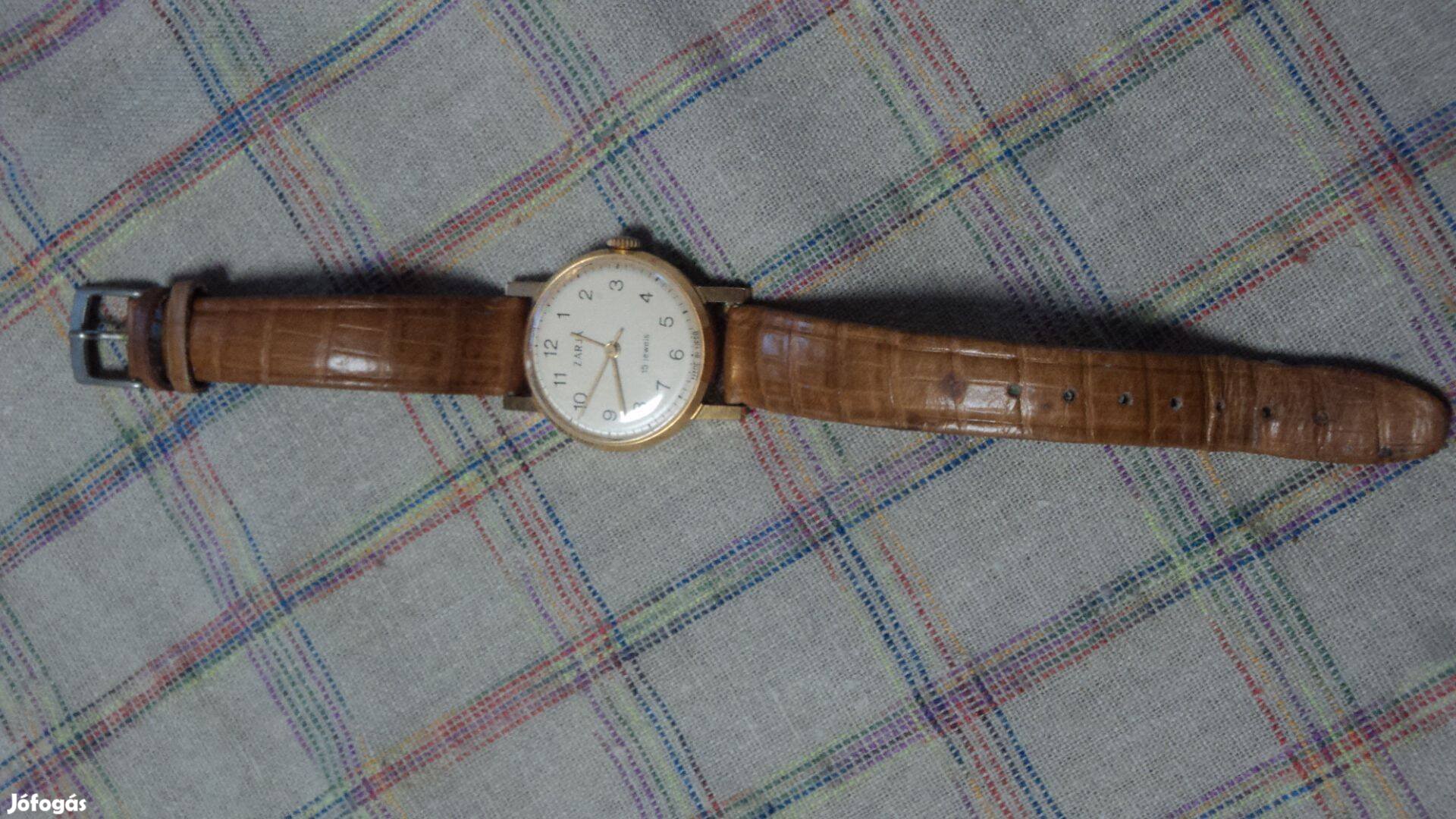 Szép állapotú, orosz, mechanikus felhúzású 15 köves acéltokos kivitelű óra, bőr szíjjal.
