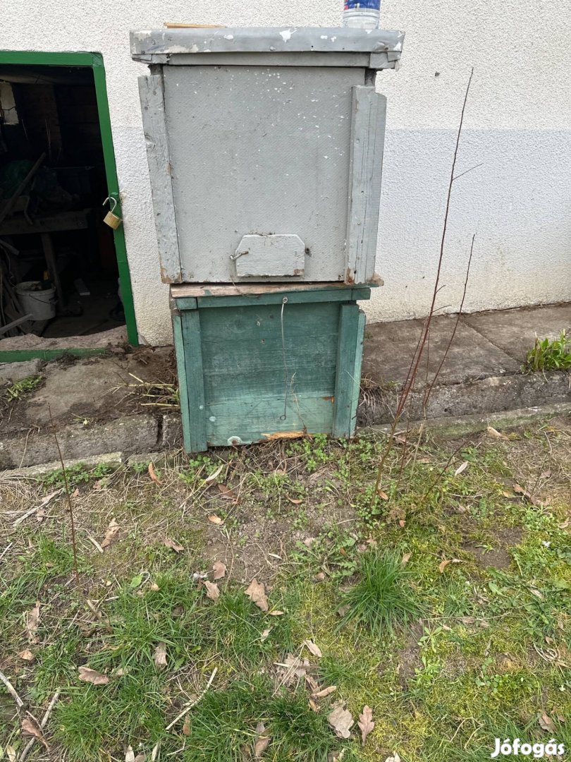 2db régebbi típusú fekvő méh kaptár.