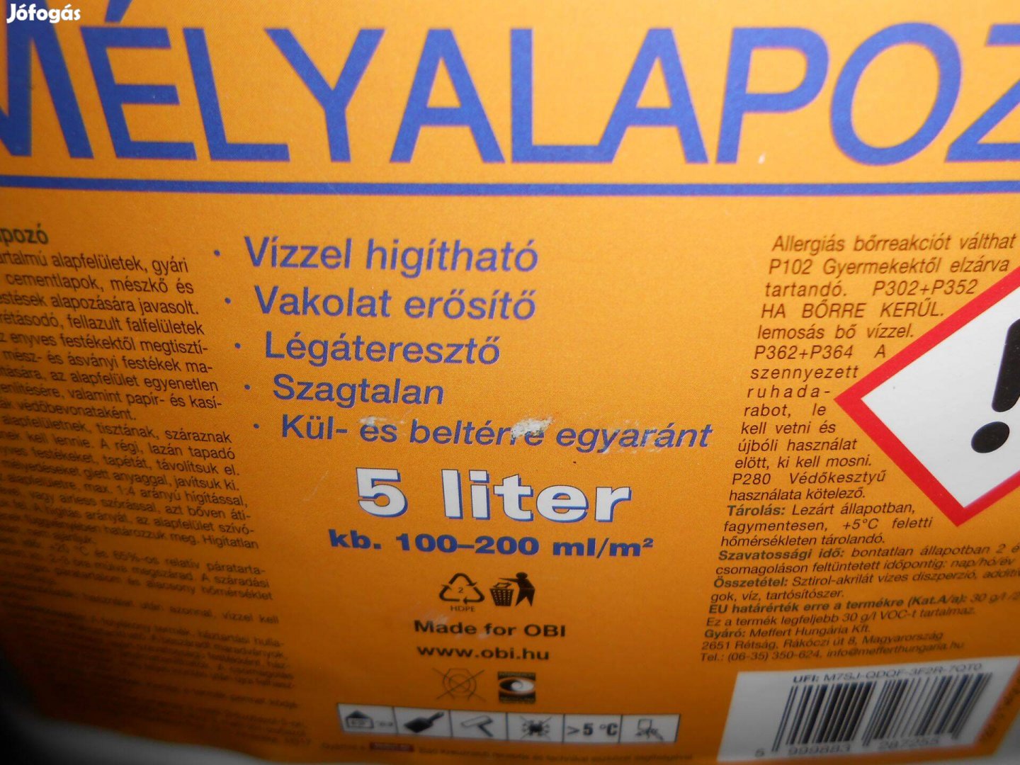 Felújításból maradt mély alapozó folyadék , festés előtt , vakolat szilárdítására , 4 liter van .