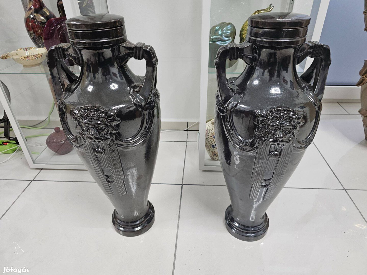 A lenyűgöző, 63 cm-es magasság ebben a kivitelben extrém ritkaság, a magyar művészi kerámia felsőkategóriáját képviseli.