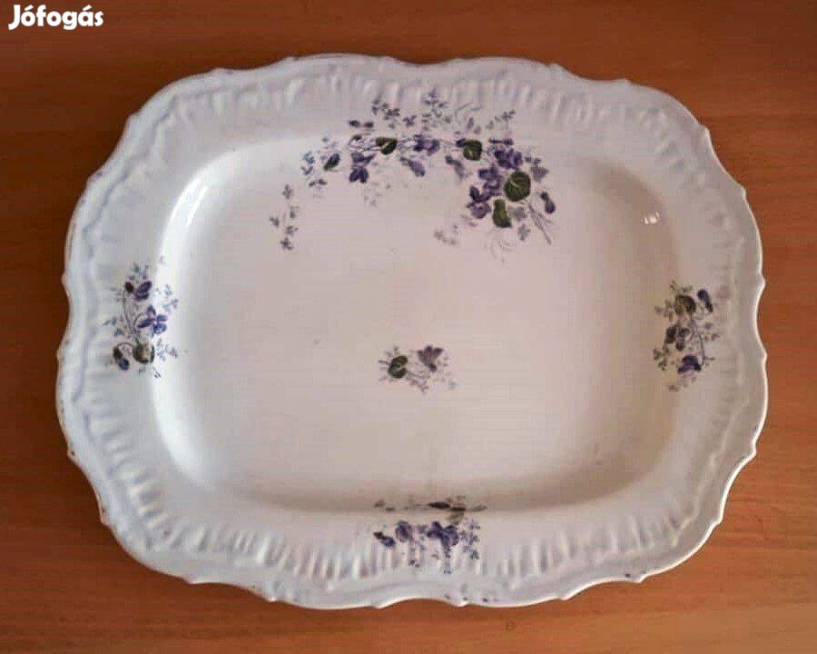 Nagy, ibolyás, antik, XIX. századi porcelán tál