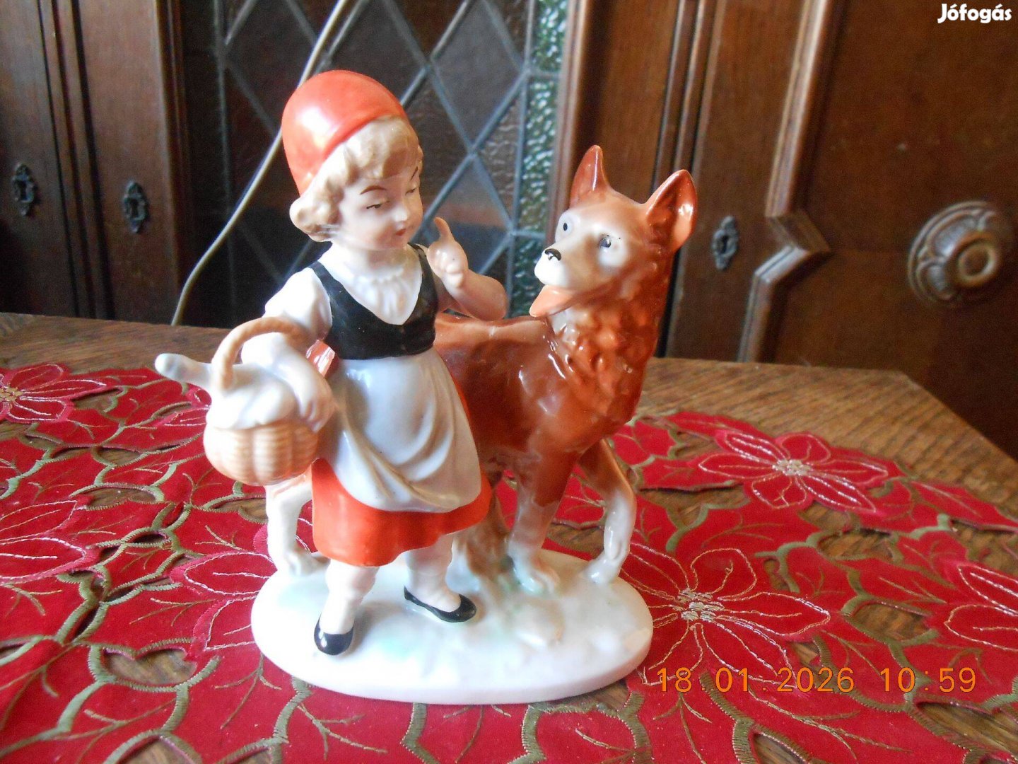 Német porcelán, Piroska és a farkas figura. Magassága 16 cm. 9380 formaszám van az alján. Hibátlan. Jelzetlen.