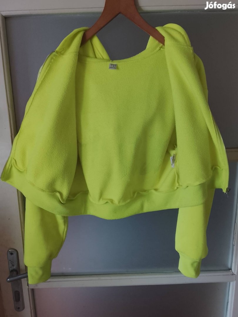 Eladó női neon zöld kapucnis pulóver. Enyhén bolyhos a mosás miatt, egyebkent pedig 1-2 alkalommal hordott, hibátlan állapotú. Temun vettem, ott 5000ft körül van.