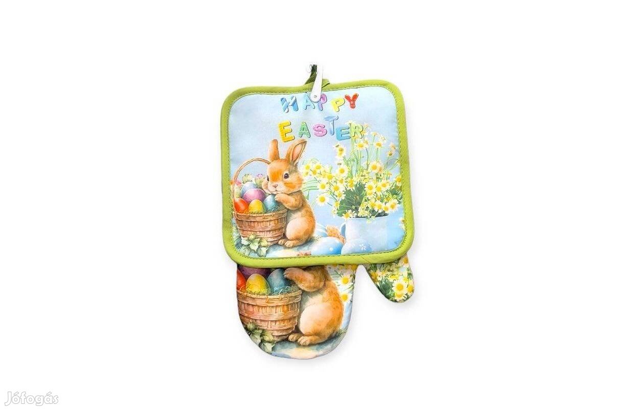 Nyuszis edényfogó kesztyű szalvétával húsvéti konyhai szett 2 db-os