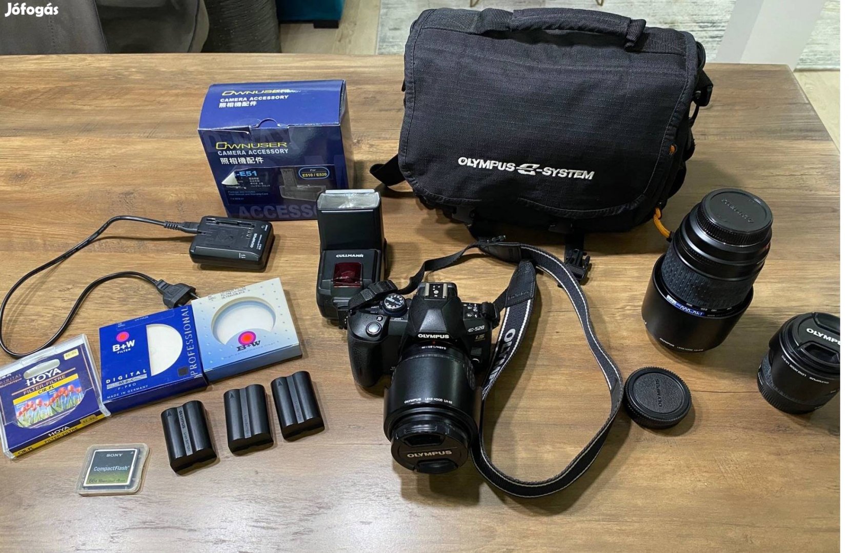 Eladó fényképezőgép a képen látható kiegészítőkkel. Objektív: Olympus digital 14-42 mm. Objektív: Olympus digital 18-180 mm. Objektív: Olympus 75-300 mm. Vaku Cullmann d4500-o/p. 3 akkumulátorral, b+w és hoya filterekkel, 1 db 4 és 1 db 8 GB memóriával.