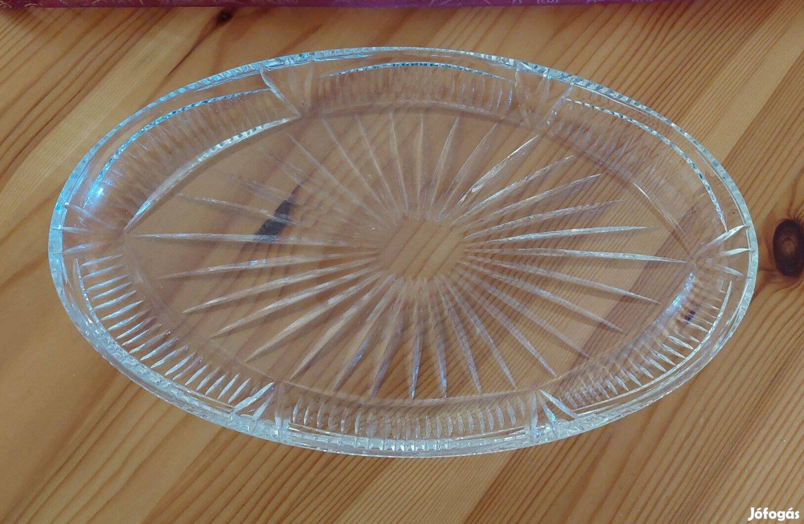 Ovális, csiszolt üvegtálca, 28 cm hosszú, 16,5 cm széles