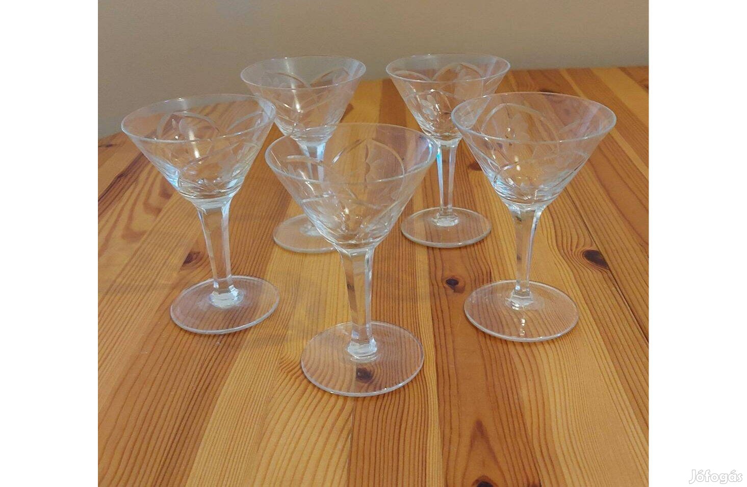 Pezsgős, koktélos csiszolt üvegpoharak, 5 db