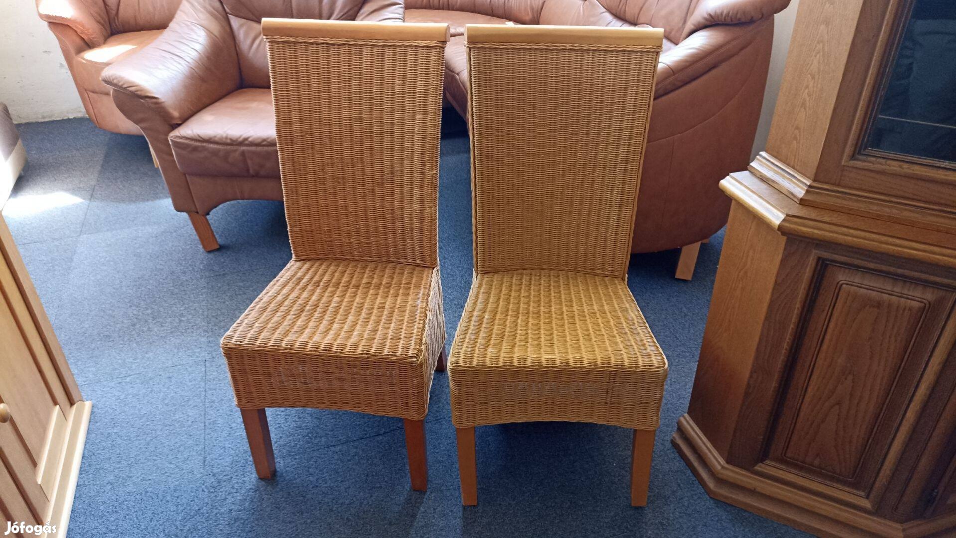 Eladó a képeken látható 2 db rattan étkezőszék. A székek használtak, de az állapotuk kitűnő. A székek csak párban eladók, és az ár 1 db-ra vonatkozik.