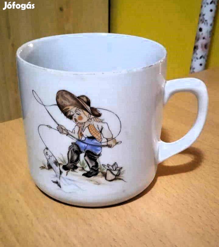 Régi Zsolnay porcelán bögre "Horgászó kisfiú" figurás