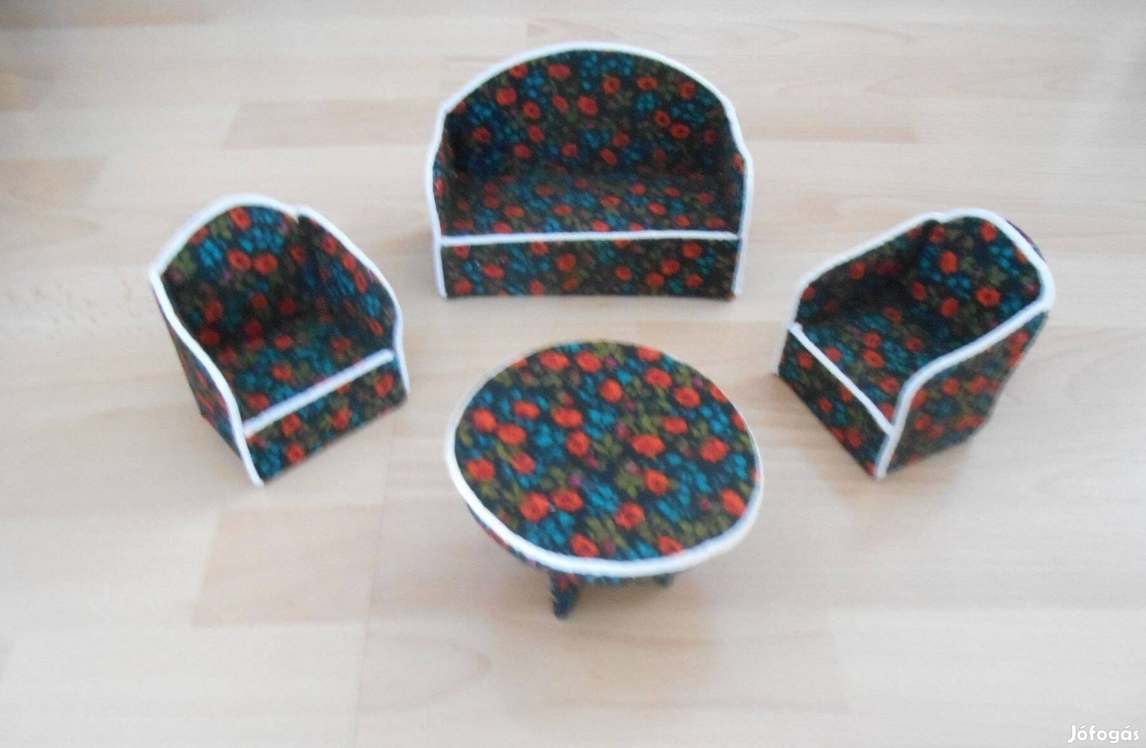 Retro, játék nappali bababútor, 2 db fotel és dohányzóasztal