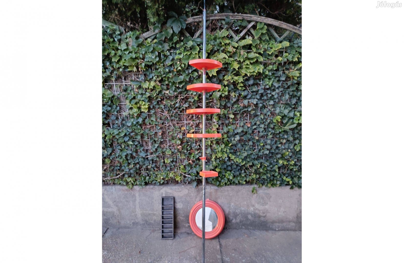 A polc álithato mgasságu és a tükör külmérete 42 cm.Apolc tetején a vékonyabb rud rugos.A beszerelése roppant egyszerü.Beteszi a kivánt helyre és önmagát rögziti.Apolcokot kivánt magasságban lehet álitani,bilincs rögzitésüek és a tarto oszlop 3 darabbol áll.