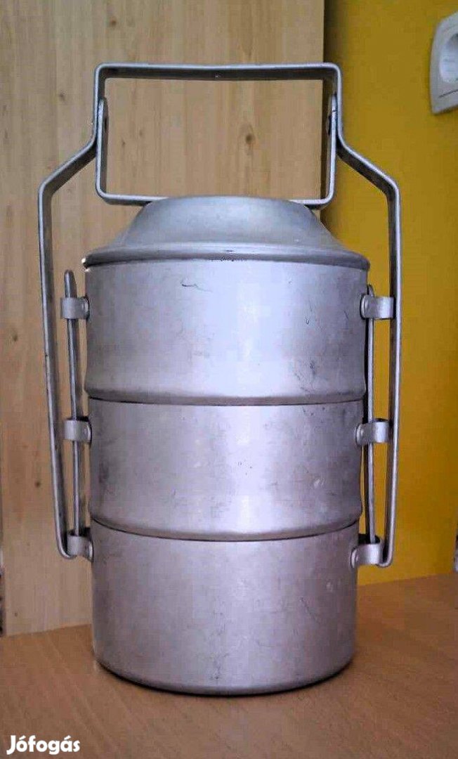 Eladó a képen látható 3 részes használt retro alumínium ételhordó.