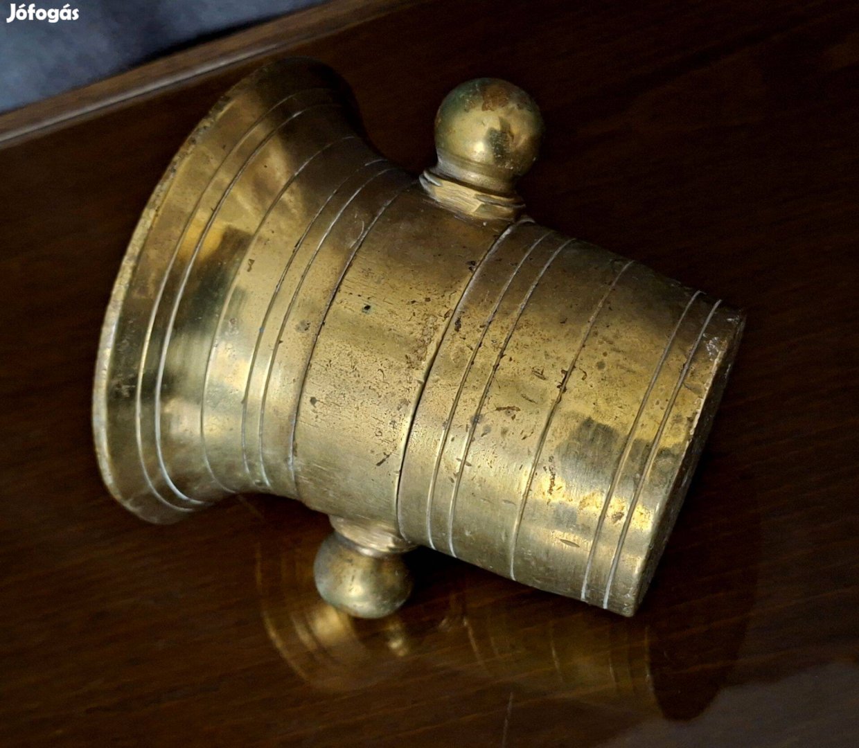 6-os méretű réz mozsár. Korának megfelelő, jó állapotban. Nem deformált, szép formájú.