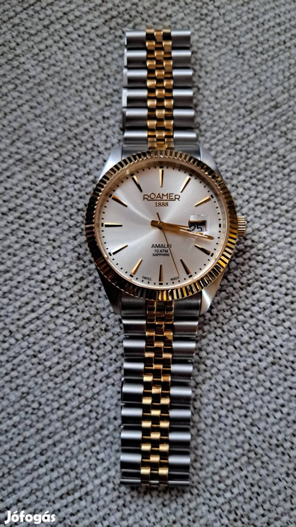 Eladó egy Roamer férfi quartz óra. 100 méterig vízálló,zafír üveges. Átmérője 42 mm. Szép,megkímélt állapotú,teljesen karcmentes. Elegáns,és nagyon pontos! Az ár fix,postaköltség a vevőt terheli.