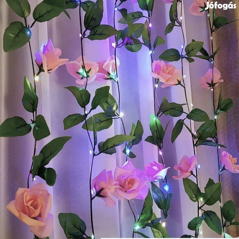 Rózsa függöny -új- 77 db leddel napelemes kültéri dísz